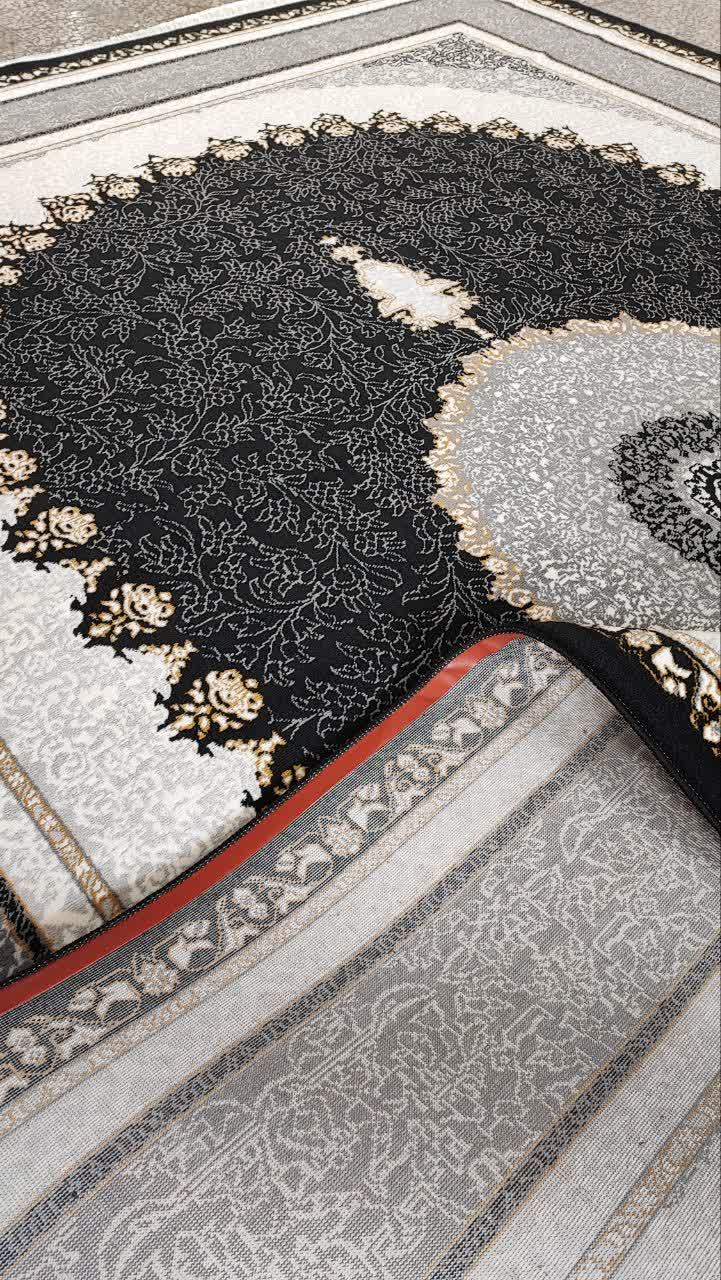 فرش طرح 700 شانه تراکم 1500 مدل ساحل مشکی حاشیه طوسی (ارسال رایگان)