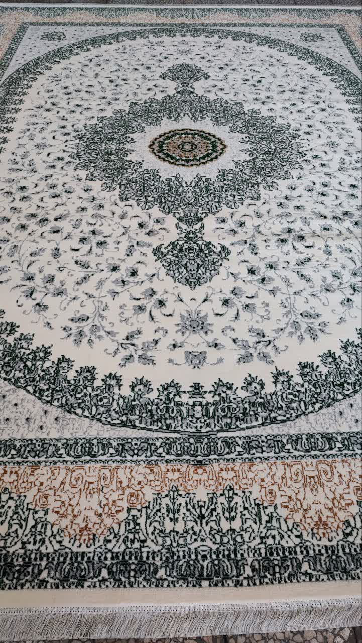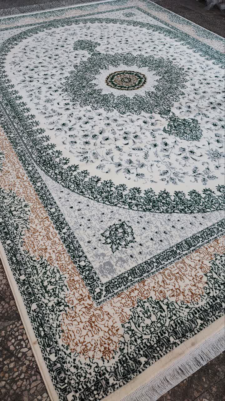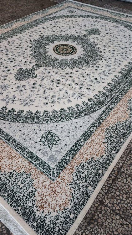 فرش طرح 700 شانه تراکم 1500 رنگ کرم سبز کد 8027 (ارسال رایگان)