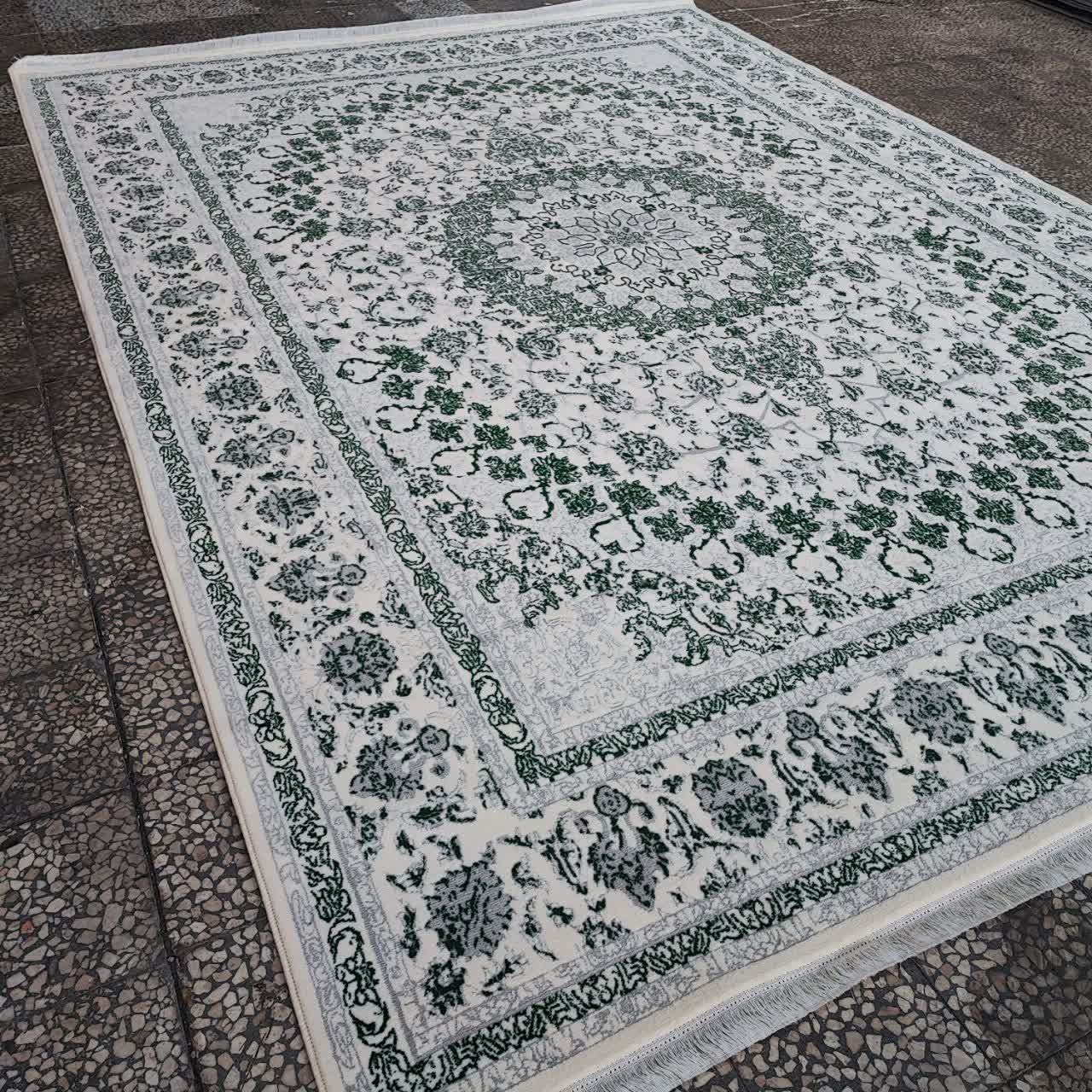 فرش طرح 700 شانه تراکم 1500 رنگ کرم سبز کد 8031 (ارسال رایگان)