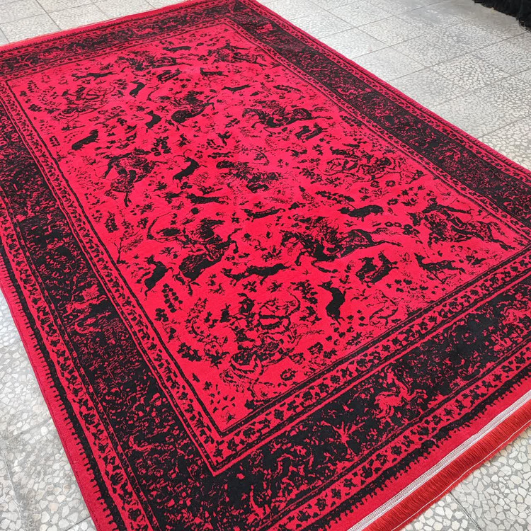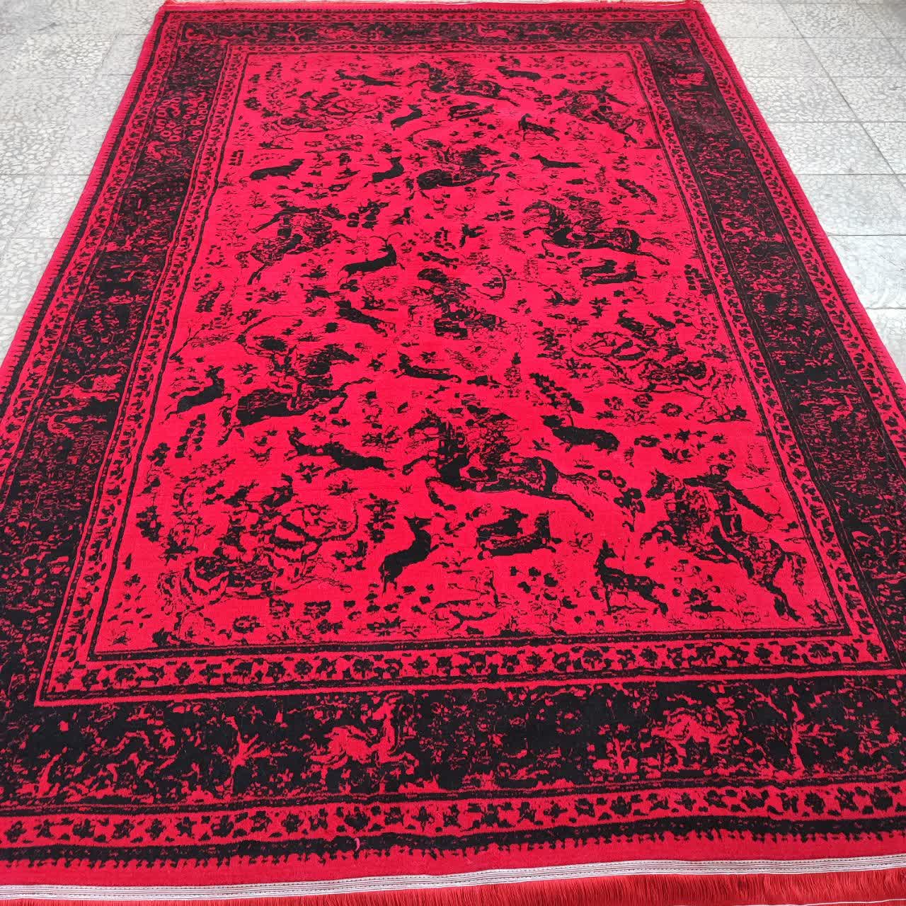 فرش طرح 700 شانه تراکم 1500 رنگ لاکی مدل شکارگاه (ارسال رایگان)