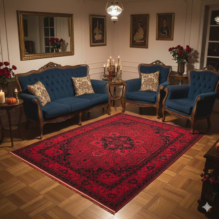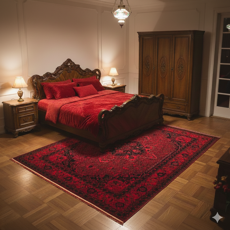 فرش طرح 700 شانه تراکم 1500 رنگ لاکی مدل هریس (ارسال رایگان)