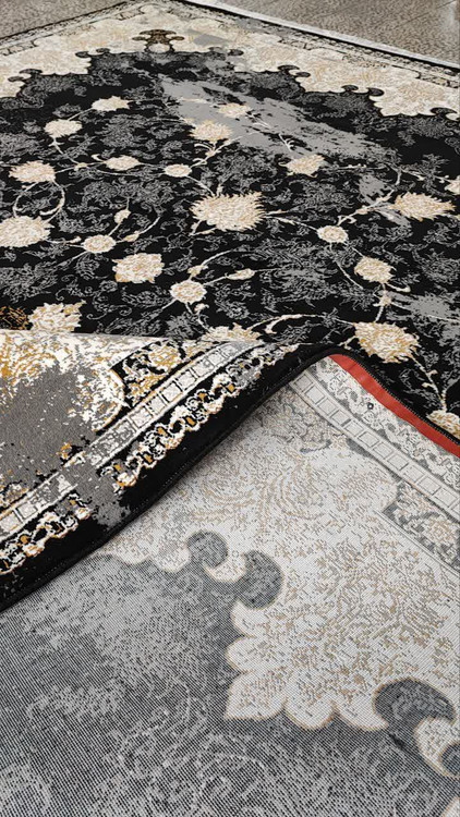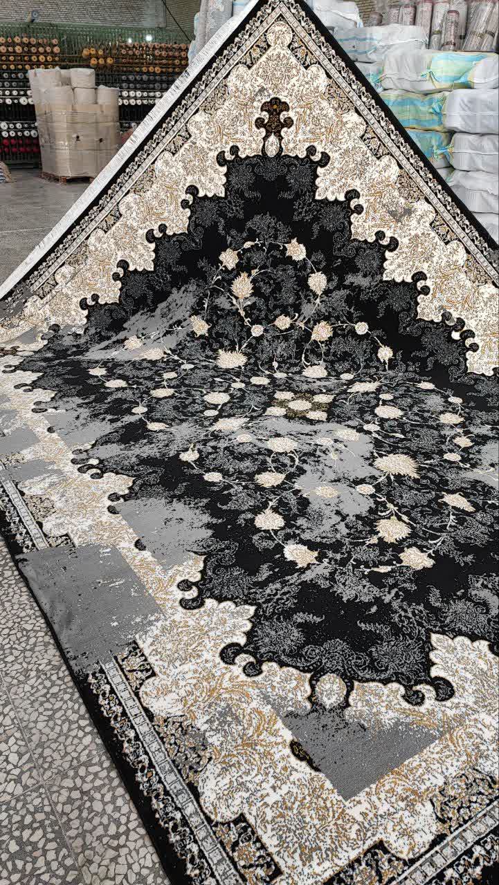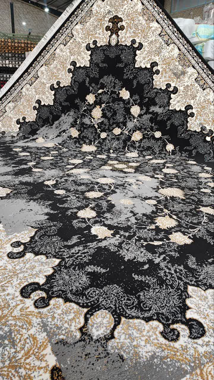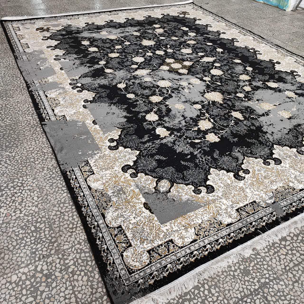 فرش طرح 700 شانه تراکم 1500 مدل رستا مشکی (ارسال رایگان)