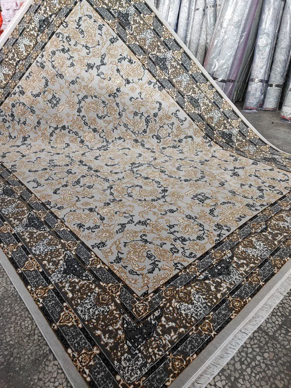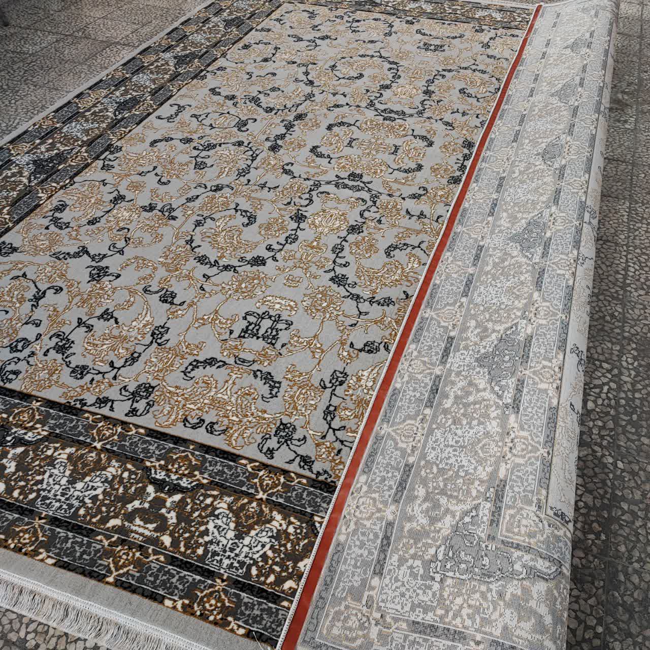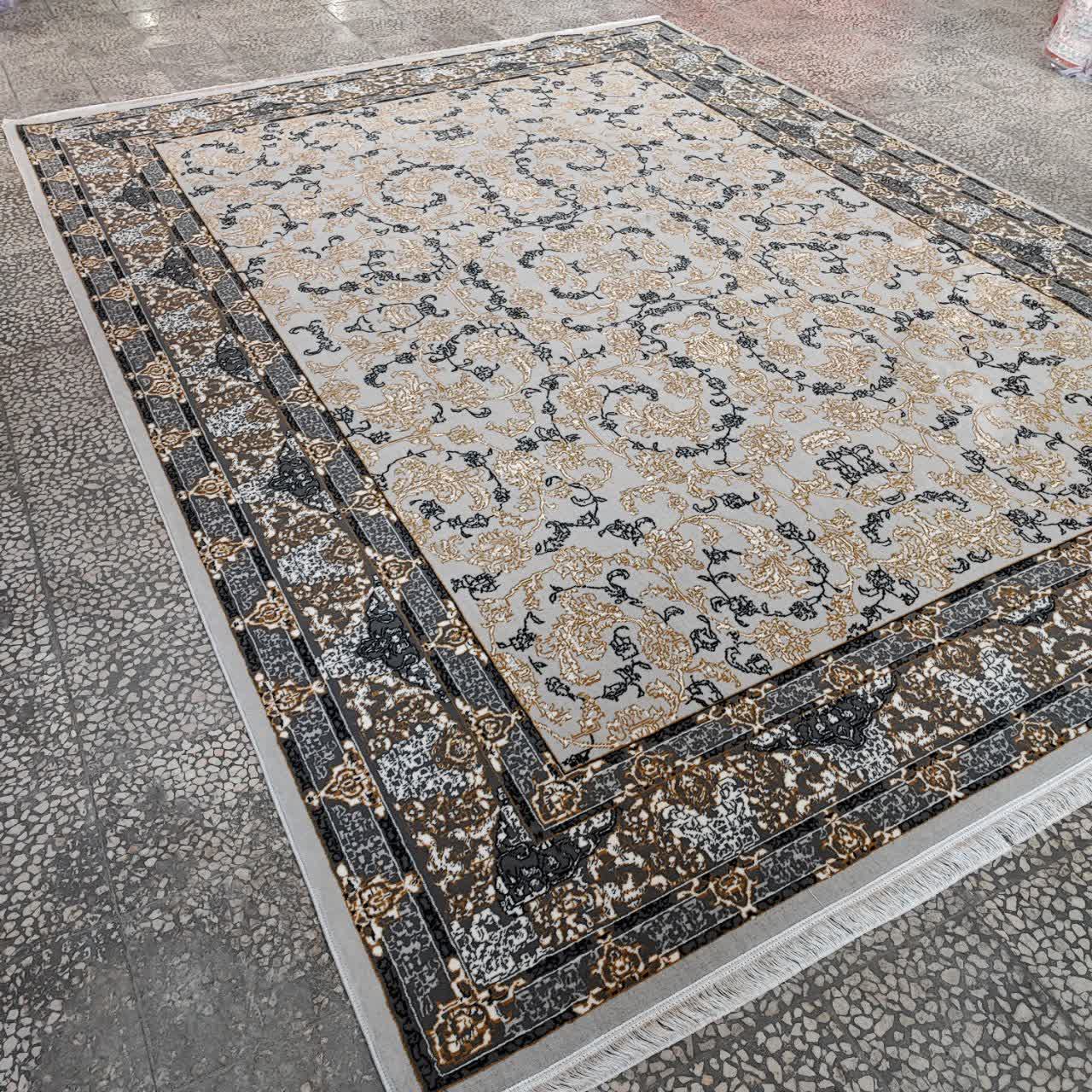 فرش طرح 700 شانه تراکم 1500 مدل تماشا نقره ای طلاکوب (ارسال رایگان)