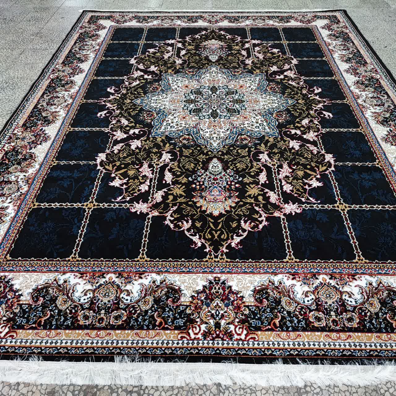فرش طرح 700 شانه تراکم 1500 مدل هیوا مشکی (ارسال رایگان)