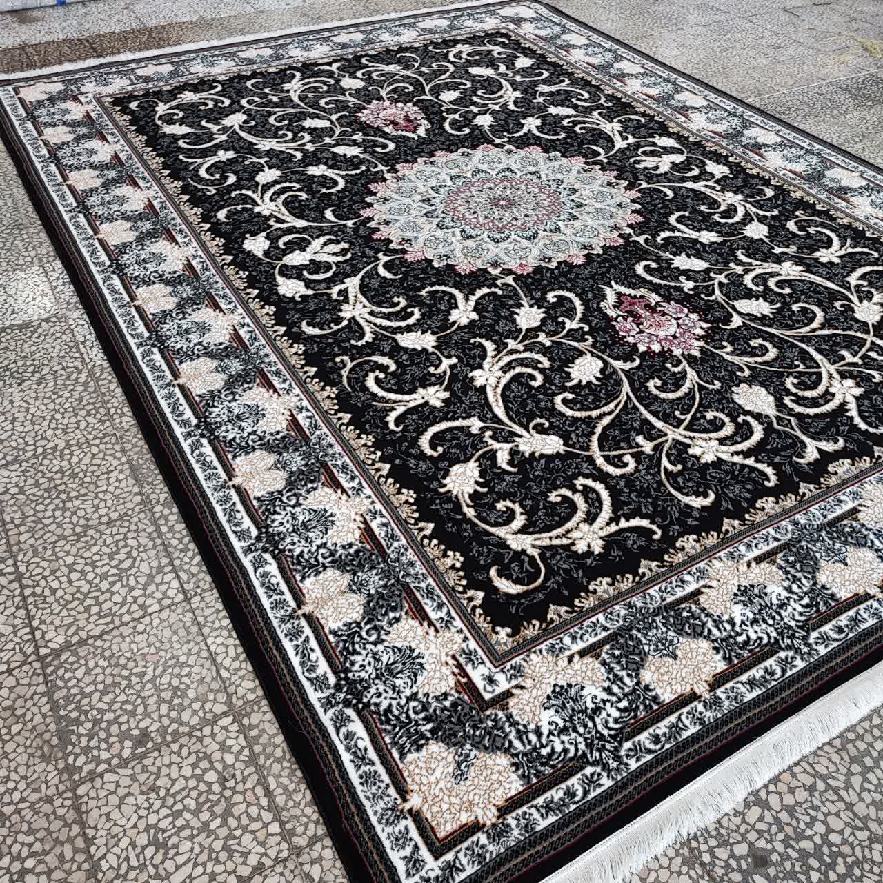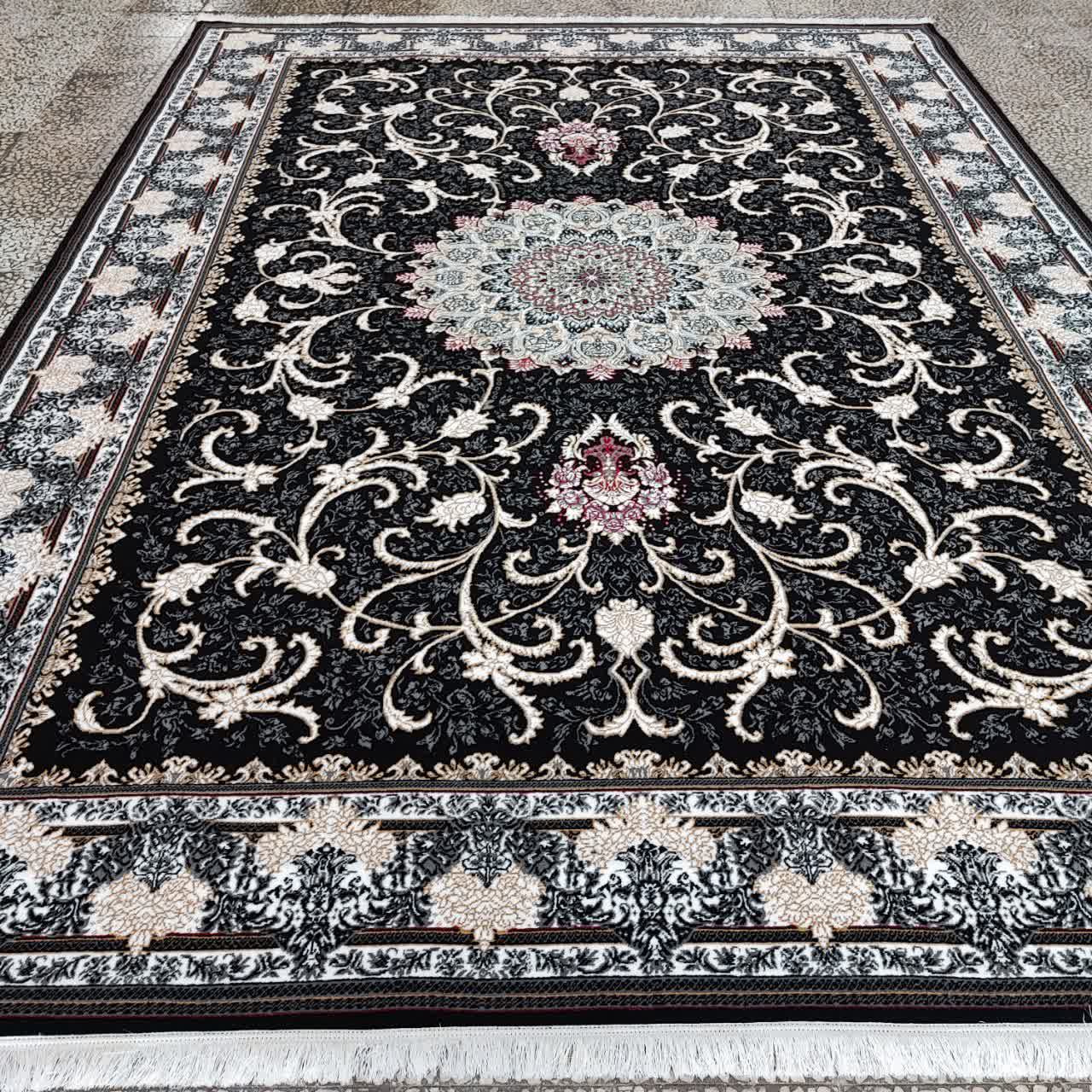 فرش طرح 700 شانه تراکم 1500 مدل طلناز مشکی (ارسال رایگان)