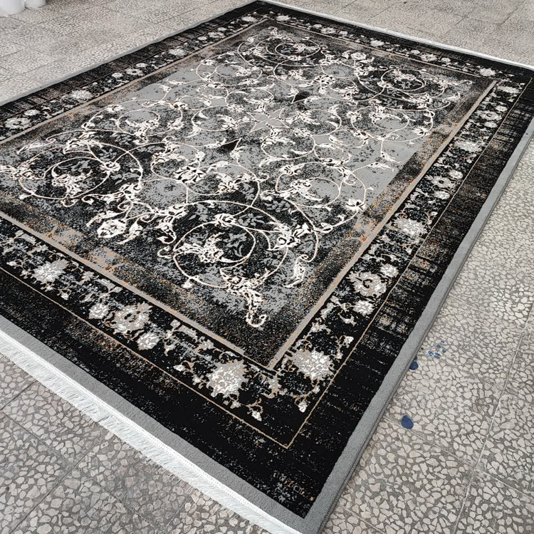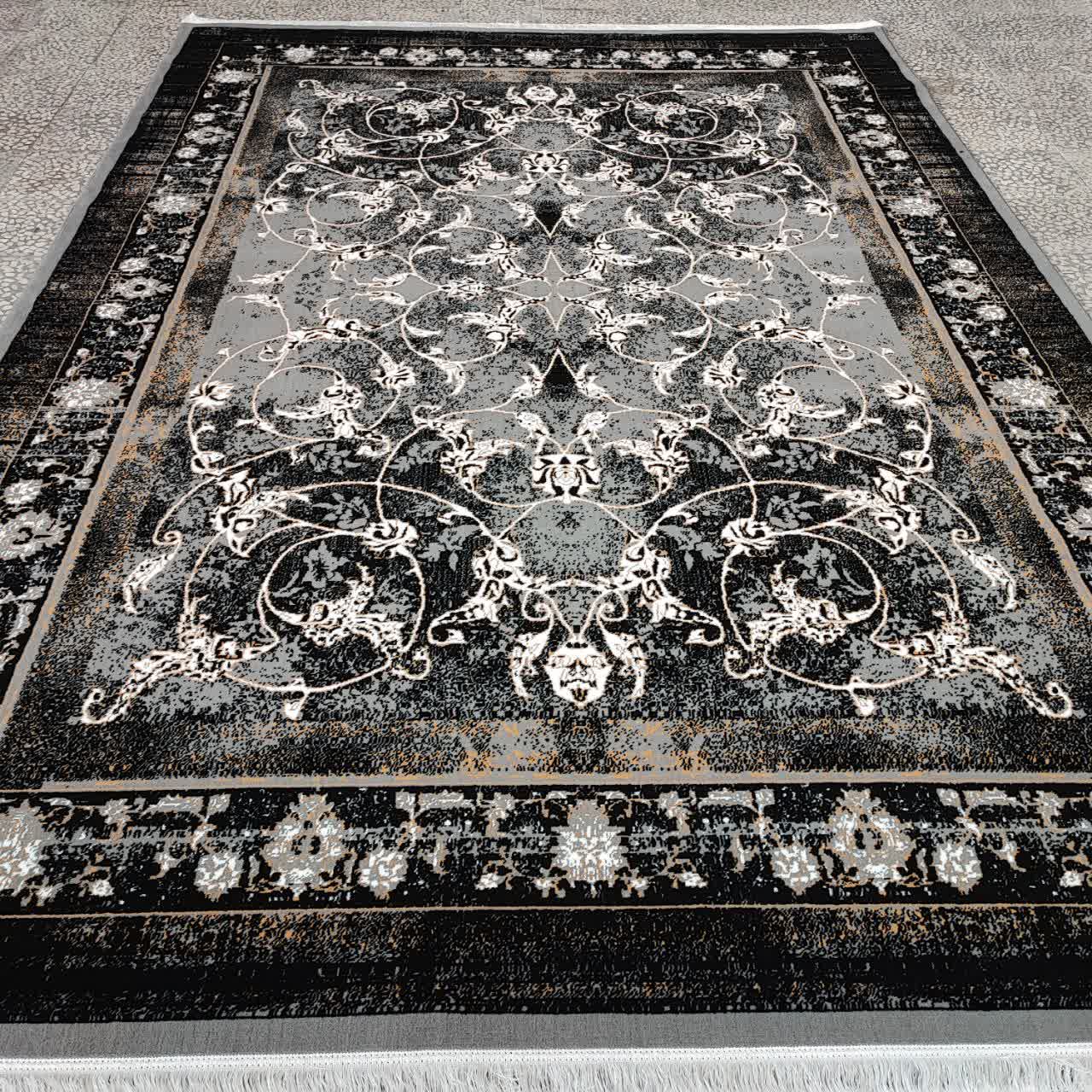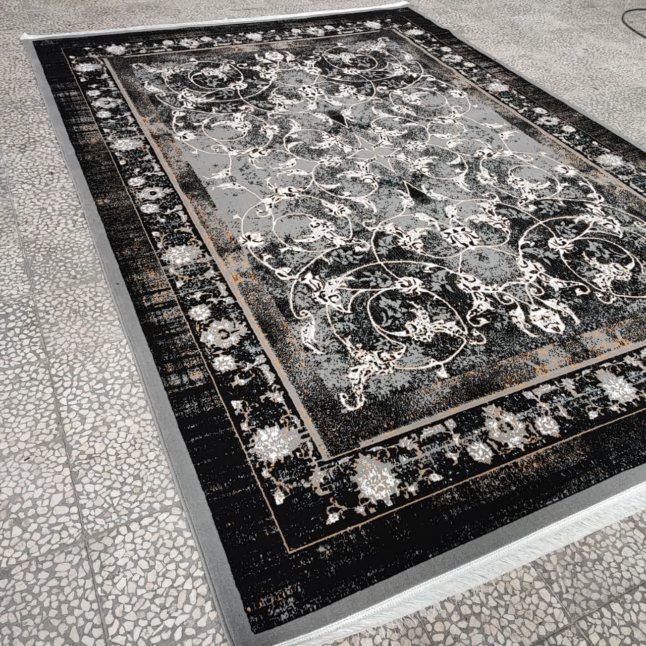 فرش طرح 700 شانه تراکم 1500 مدل دلانا طوسی حاشیه مشکی (ارسال رایگان)